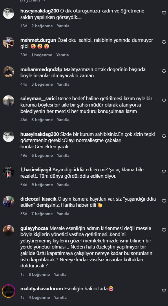 Malatya Ortak Meselemiz Platformu’nun açıklaması, kamuoyunda “olayı normalleştirme ve üstünü kapatma çabası” olarak tescillenmiştir. Esenlik A.Ş. gibi şehrin parasıyla büyüyen kurumlar, hiç kimsenin şahsi derebeyliği değildir. Halk, failin kim olduğuna bakılmaksızın gereğinin yapılmasını ve “kurumsal imaj” arkasına saklanılmamasını bekliyor.
